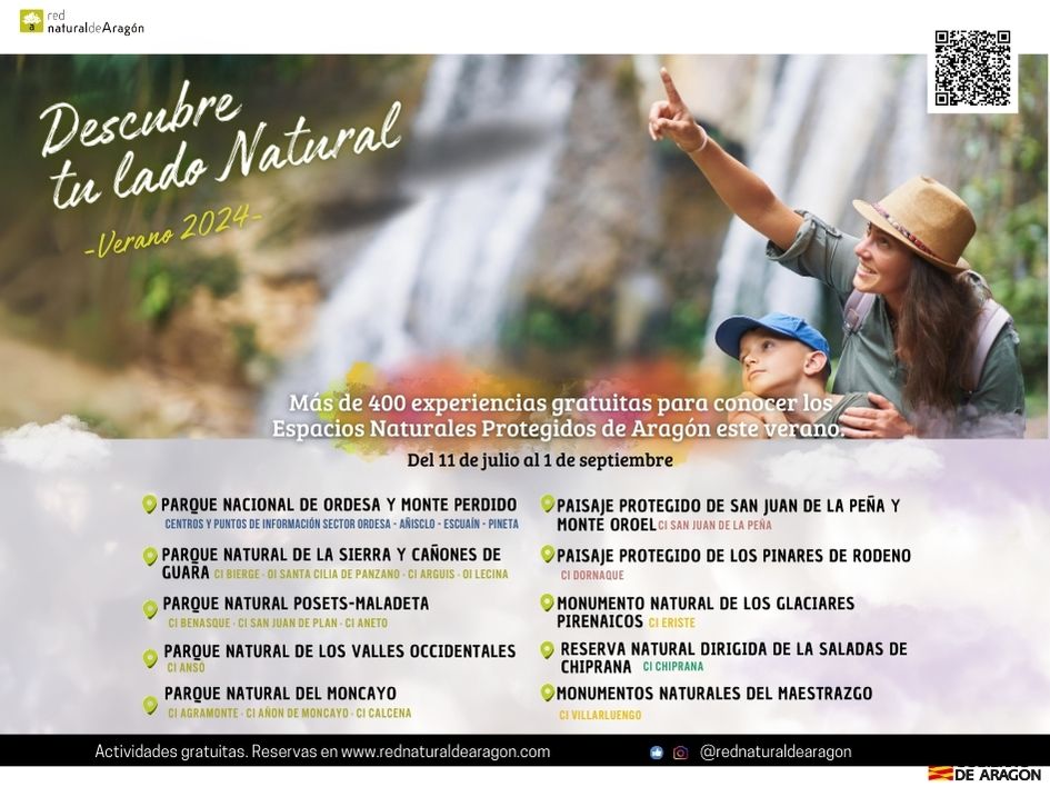 La Red Natural de Aragón acaba de lanzar una nueva edición del programa de actividades de verano por los Espacios Naturales Protegidos de la Comunidad. Bajo el lema ‘Descubre tu lado natural’, la propuesta incluye más de 400 experiencias gratuitas de divulgación ambiental repartidas por diez Espacios Naturales que se llevarán a cabo desde el 11 de julio al 1 de septiembre.